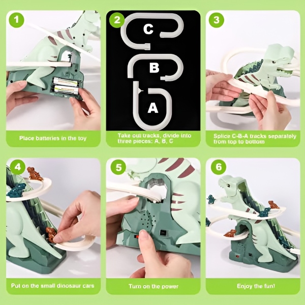 Műanyagból készült, sima, lekerekített élekkel és pályacsatlakozásokkal, így a kis dinoszauruszautó biztonságosan halad át az alagúton, végtelen szórakozást nyújtva a gyerekeknek.