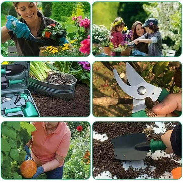 Ez a kerti szerszámkészlet mindent tartalmaz, amire szüksége lehet új virágok és növények ültetéséhez, valamint kerte jó állapotban tartásához. A készlet tartalmaz egy gyomirtó karmot/ gereblyét és két különböző méretű növénykanalat, így mindenféle növényt könnyen és kényelmesen ültethet és karbantarthat.