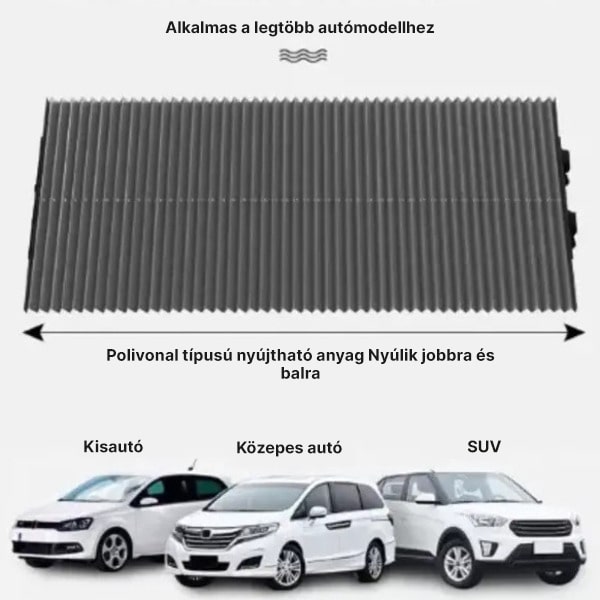 Ez a napellenző széles járműválasztékhoz illeszkedik, beleértve az autókat, furgonokat, teherautókat és SUV-kat. Univerzális illeszkedésű, mivel egyszerűen a kívánt méretre vághatja a szélességet.