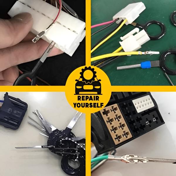 🔧 Ez a szerszámkészlet időt és energiát takarít meg, mivel könnyen eltávolítja a vezetékeket az autók, motorkerékpárok és elektronikai eszközök csatlakozóiból anélkül, hogy a csapok vagy a vezetékek megsérülnének.